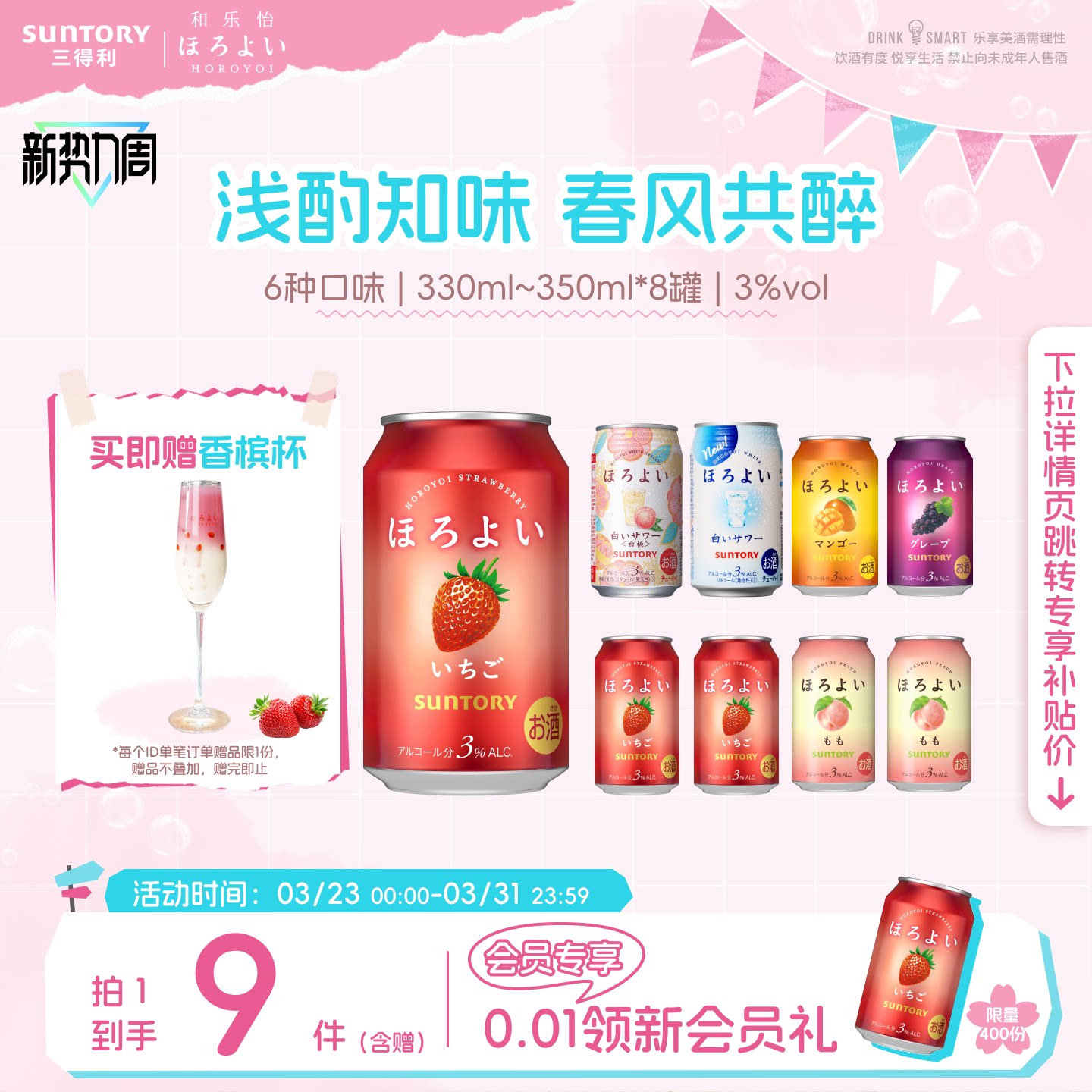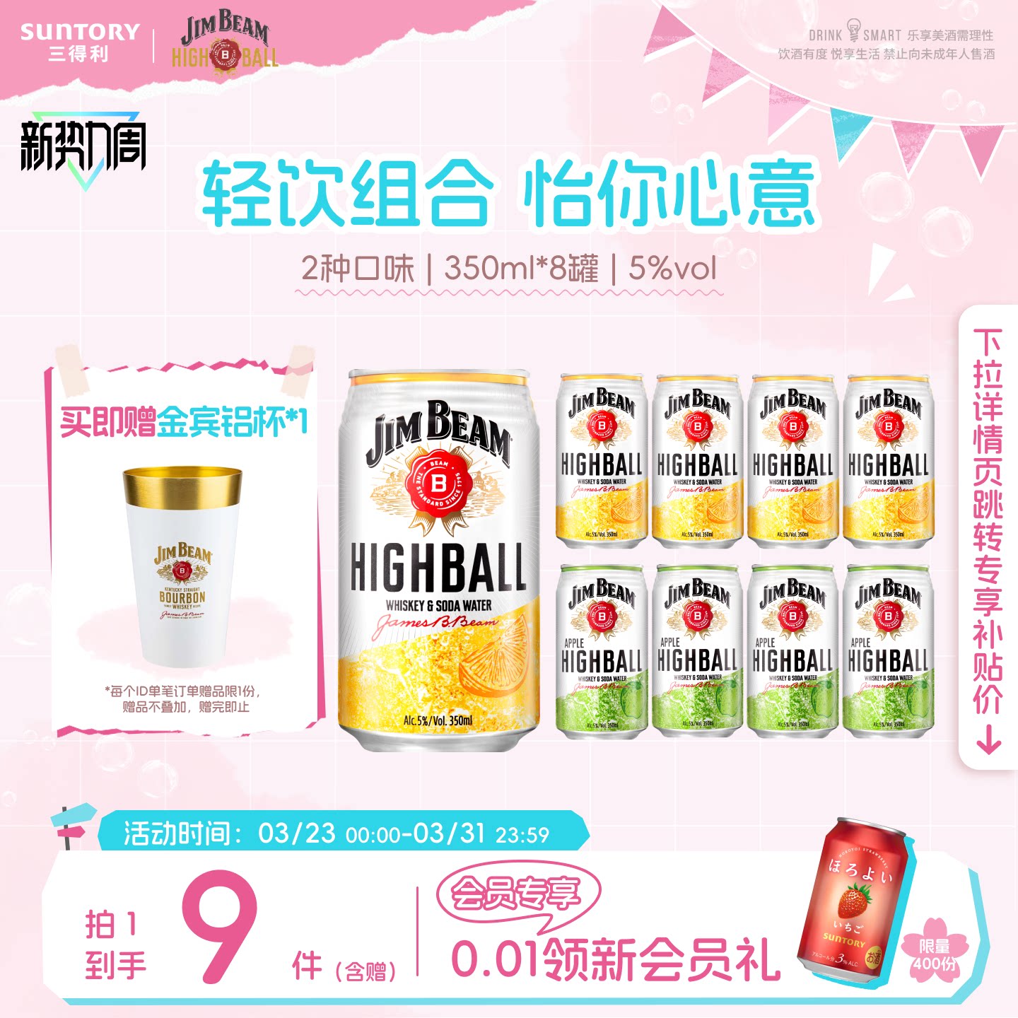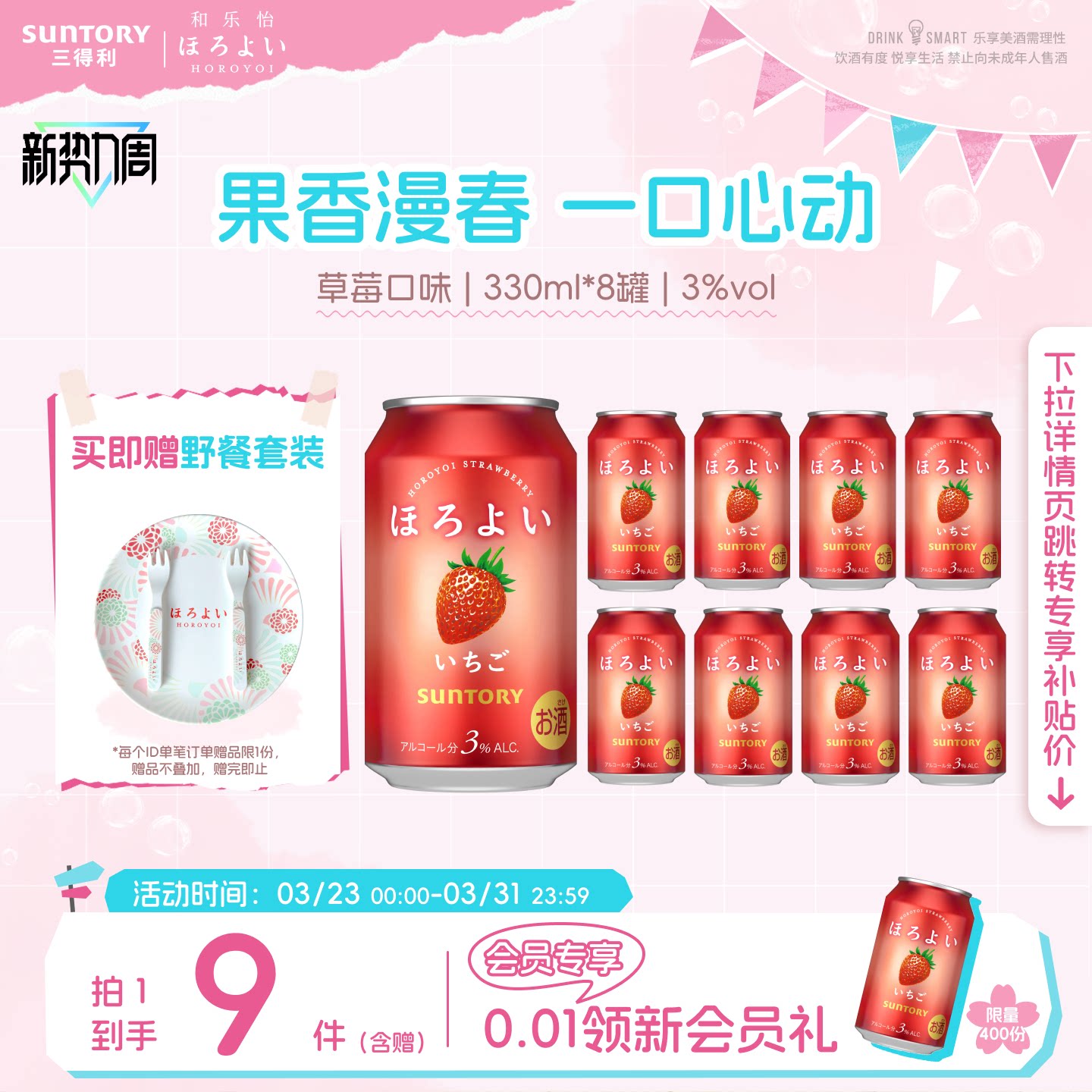 下拉详情领优惠|三得利和乐怡预调鸡尾酒3度气泡酒低度网红8罐