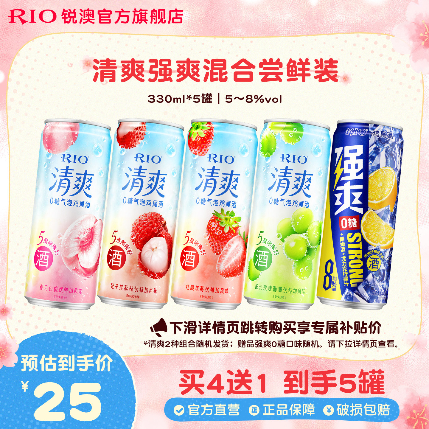 RIO锐澳预调鸡尾酒低度酒微醺强爽混合330ml*5罐果酒气泡酒甜酒