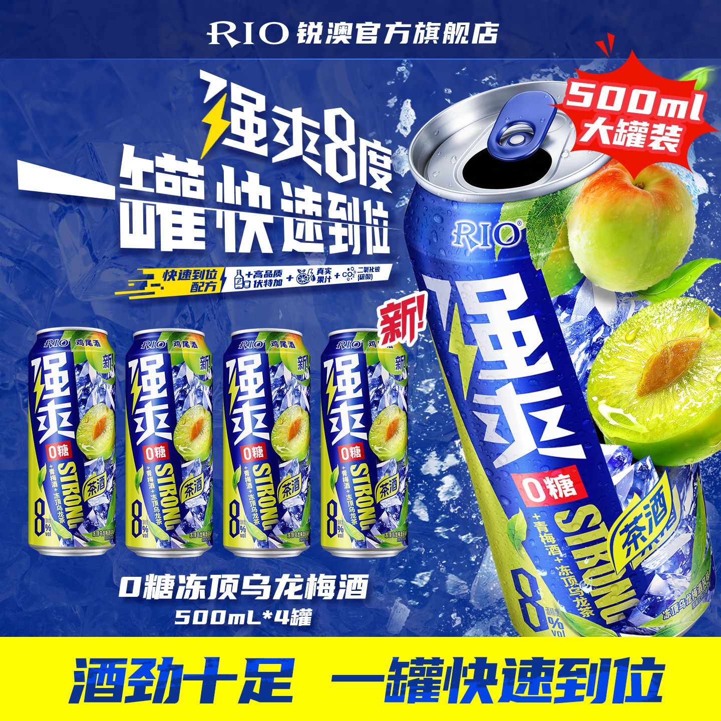 新品RIO锐澳预调鸡尾酒0糖8度强爽冻顶乌龙500ml*4罐青梅酒梅子酒