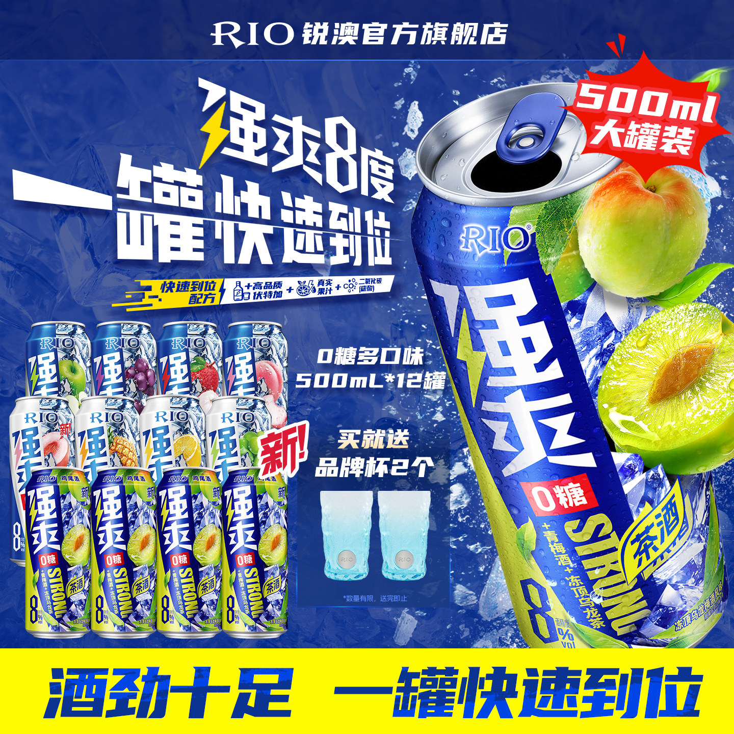大罐装新品RIO锐澳预调鸡尾酒8度强爽500ml*8罐0糖梅子酒青梅酒