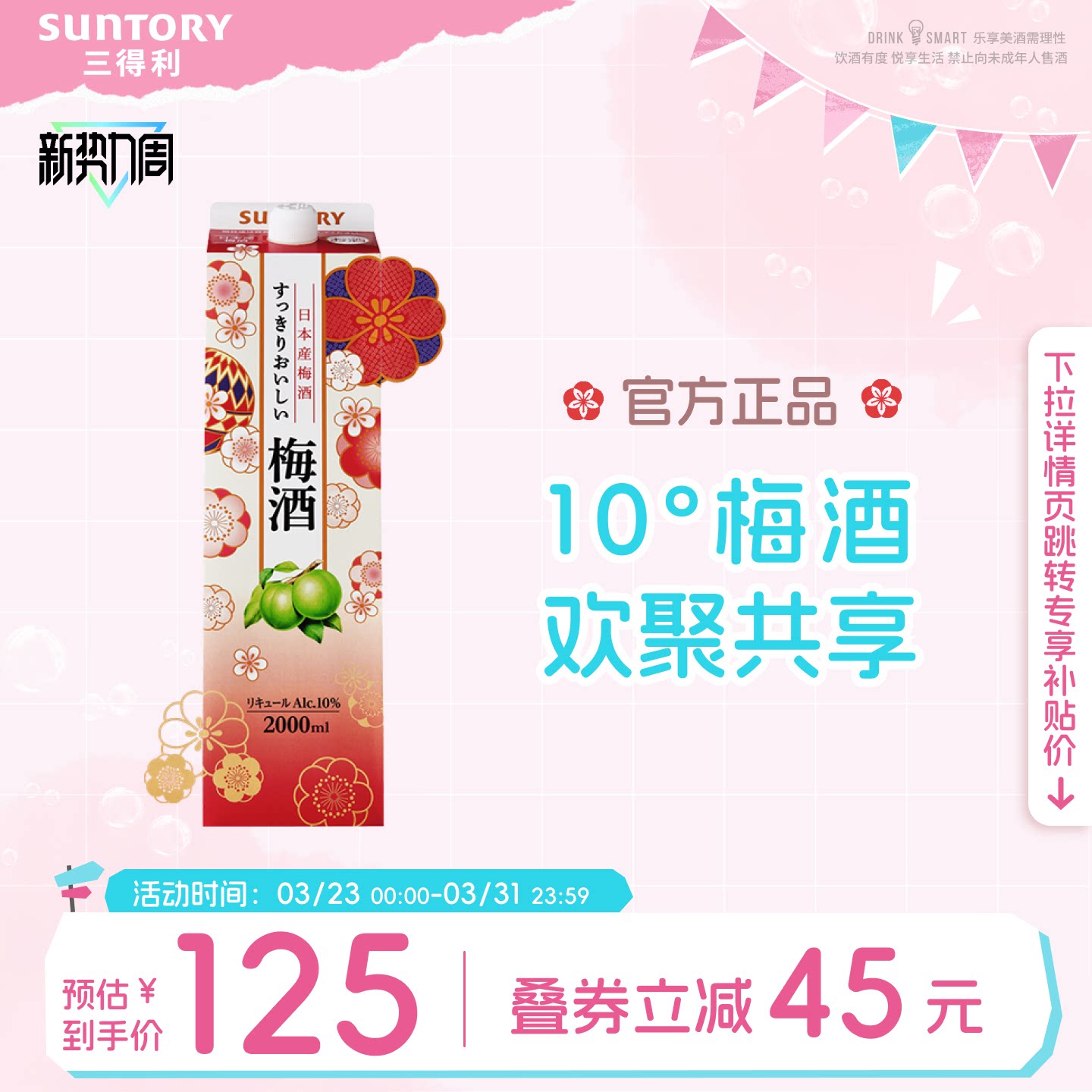 【官方正品】宾三得利原装进口Suntory青梅酒10度低度果酒2L盒装