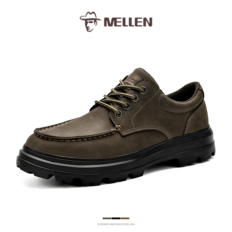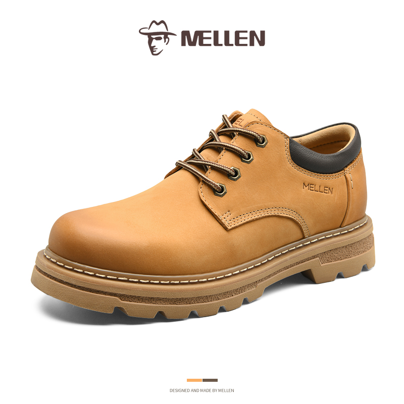 MELLEN名郎男鞋新款英伦休闲鞋子真皮男士厚底耐磨户外皮鞋工装鞋
