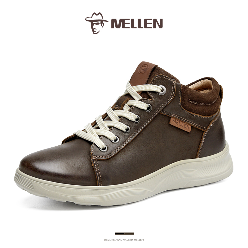 MELLEN名郎男鞋新款真皮时尚户外休闲鞋男皮鞋百搭鞋子板鞋男厚底