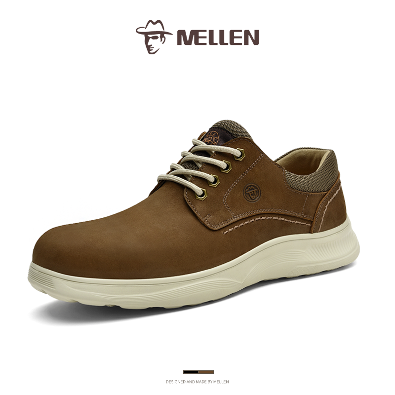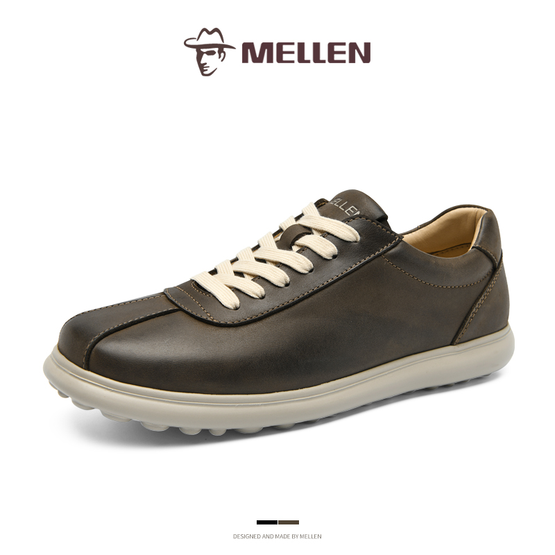 MELLEN名郎男鞋2025秋冬新款复古低帮轻量缓震舒适透气休闲皮鞋男