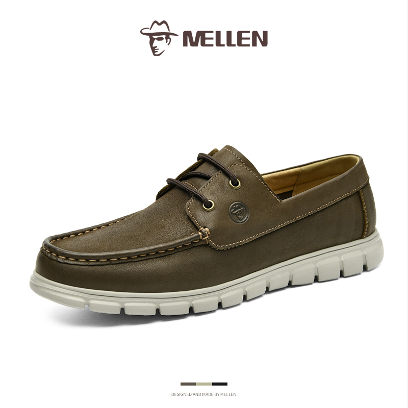 MELLEN名郎男士新款真皮软底轻便平底鞋舒适柔软帆船鞋百搭休闲鞋
