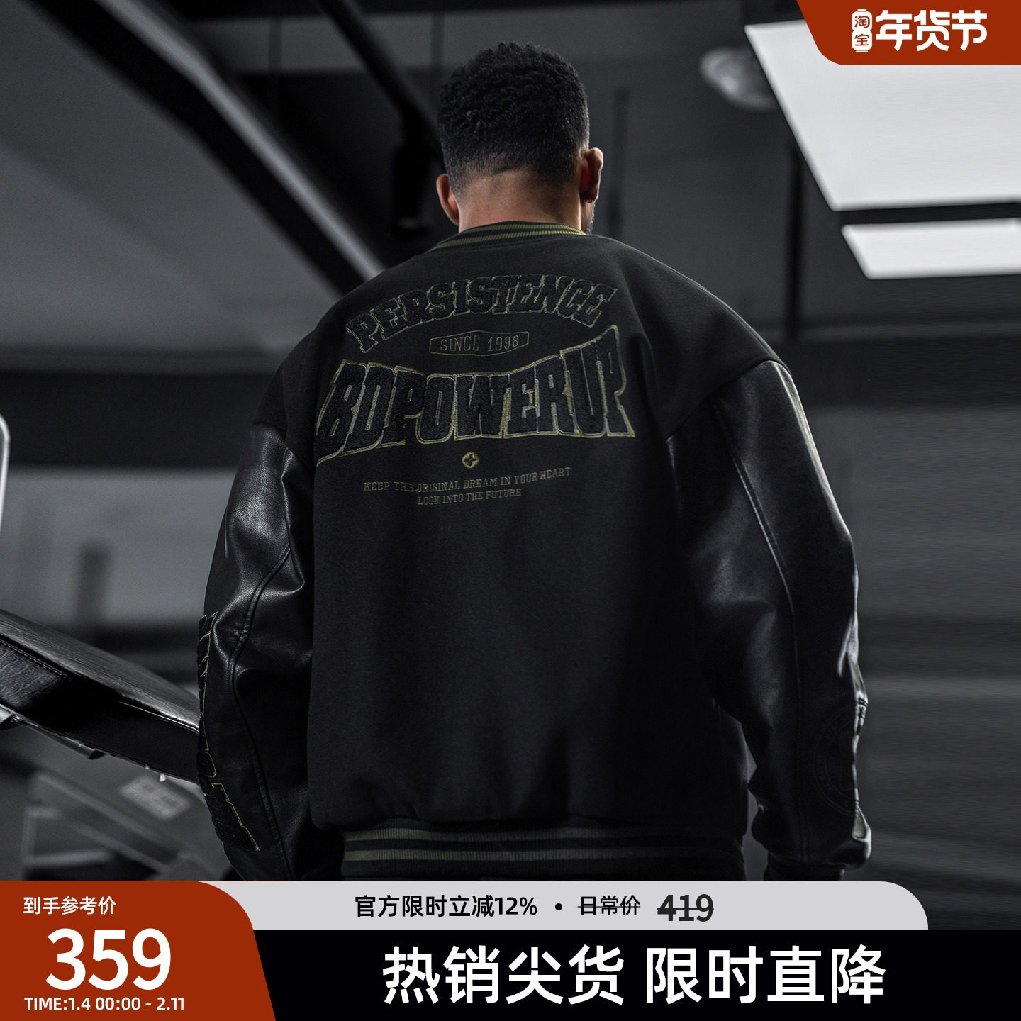 BD健美站夹棉加厚美式复古棒球服男潮牌刺绣运动夹克外套男宽松冬
