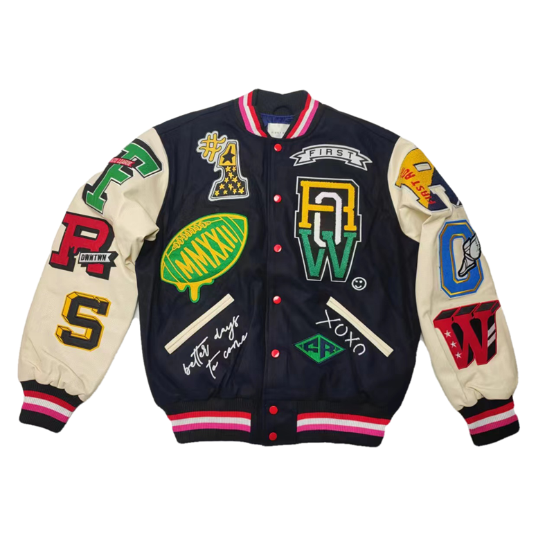 重磅狠货 美版 嘻哈街头hiphop美式刺绣 羊毛呢pu皮 夹棉 棒球服