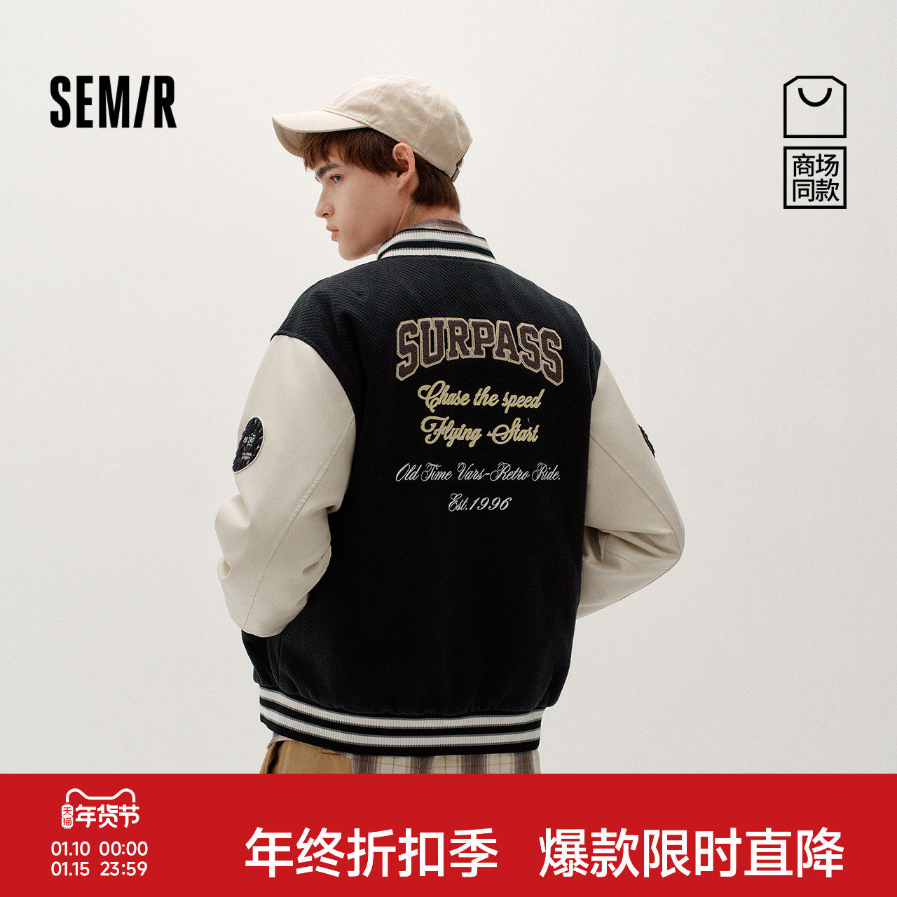 商场同款|森马仿毛呢外套男冬复古学院风棒球服2025新款夹棉夹克