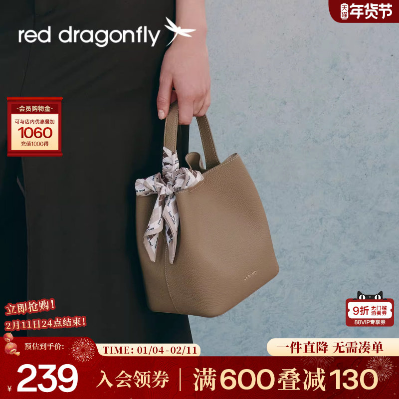 红蜻蜓水桶包女式新款带内胆真皮牛皮气质中年妈妈手提单肩斜挎包