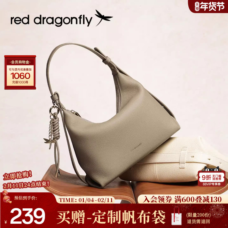 红蜻蜓月牙包女式2025新款头层牛皮真皮腋下单肩手提中年妈妈包包