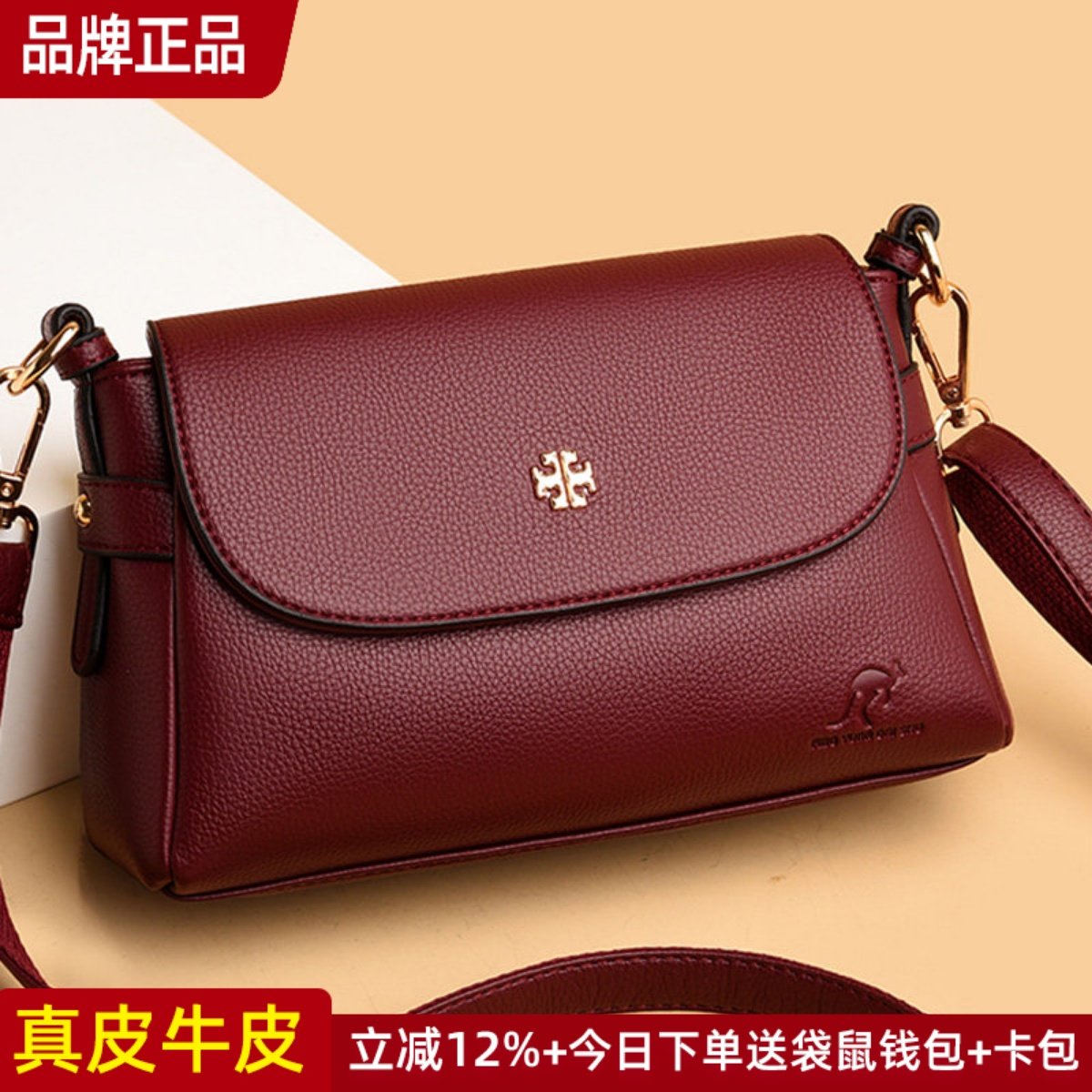 袋鼠真皮牛皮女士包包2025新款中年妈妈包手提包斜挎百搭洋气女包