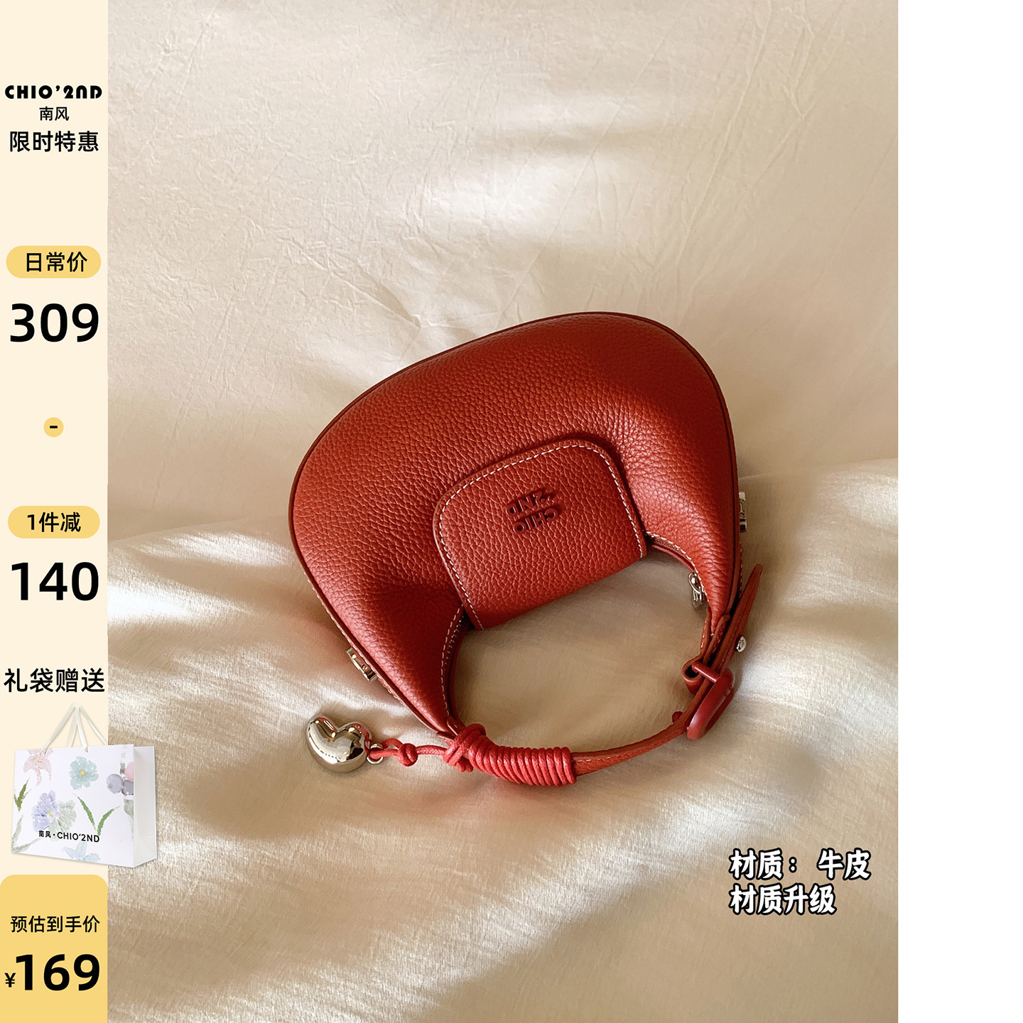 南风Chio2nd 巴黎暮色牛皮真皮手提包女士2025新款红色包包斜挎包