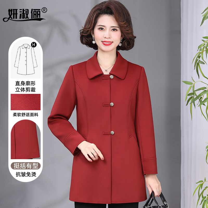 妈妈春秋装2025新款厚风衣中长款时尚高贵中老年人洋气红色外套女