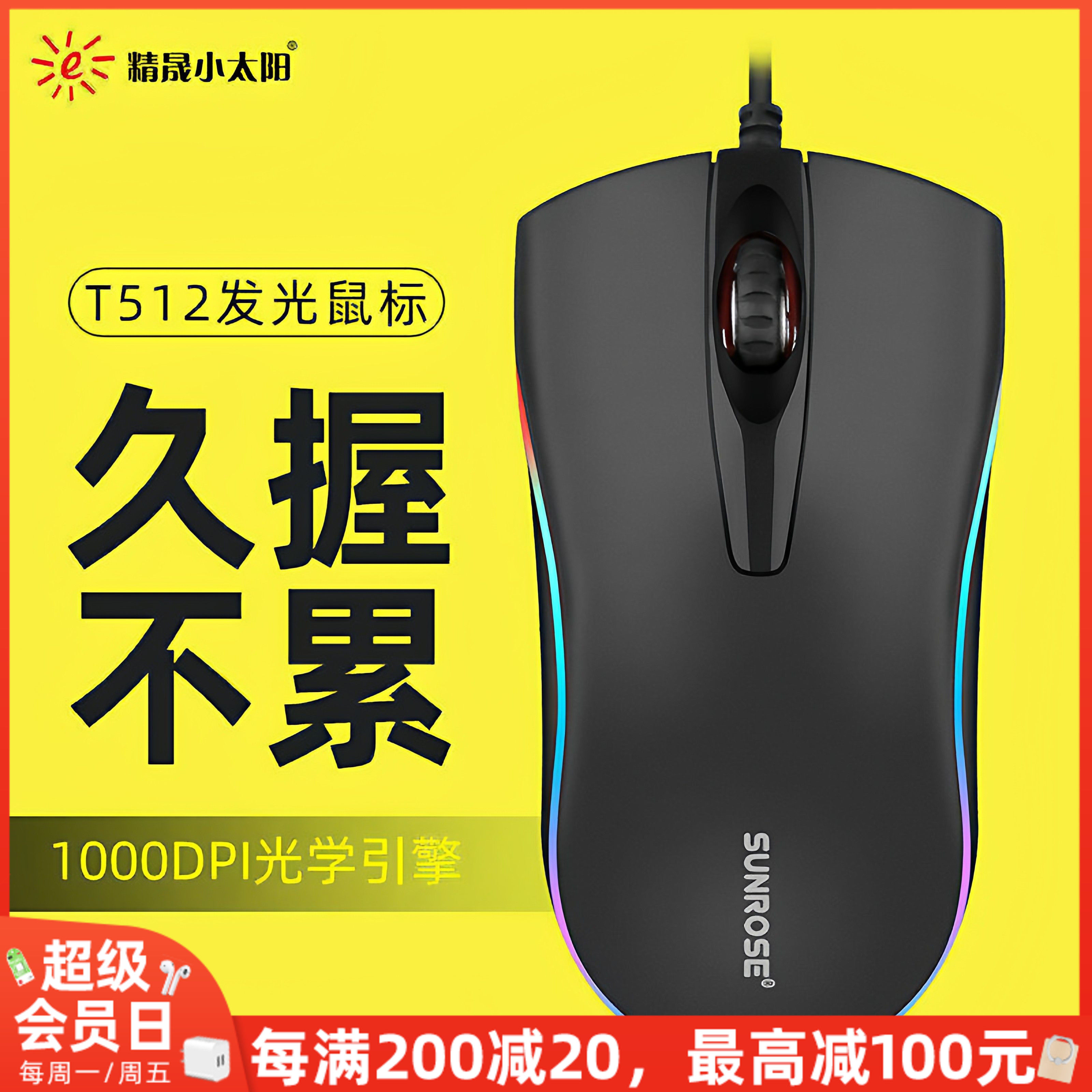 精晟小太阳T512有线发光商务鼠标USB台式笔记本电脑办公室鼠标lol