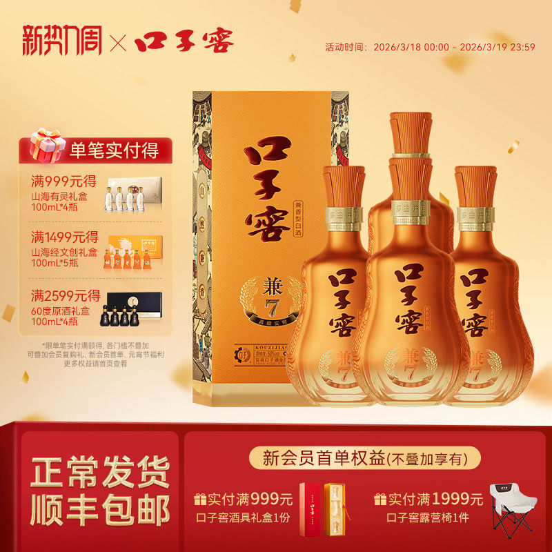 口子窖兼7系列41度500mL*4瓶整箱 安徽白酒送礼送长辈 官方旗舰店