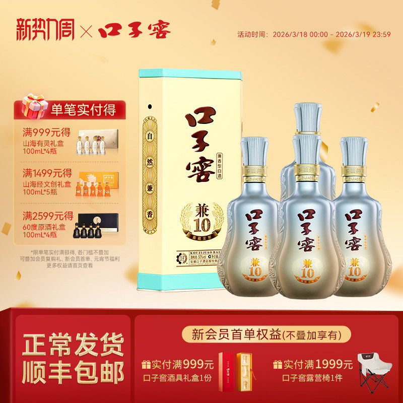 口子窖兼10整箱41度/50度500mL*4瓶 安徽兼香型白酒高端商务送礼