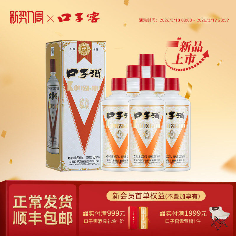 口子窖5年型46度500mL*6瓶 五年型纯粮白酒整箱送长辈 官方旗舰店