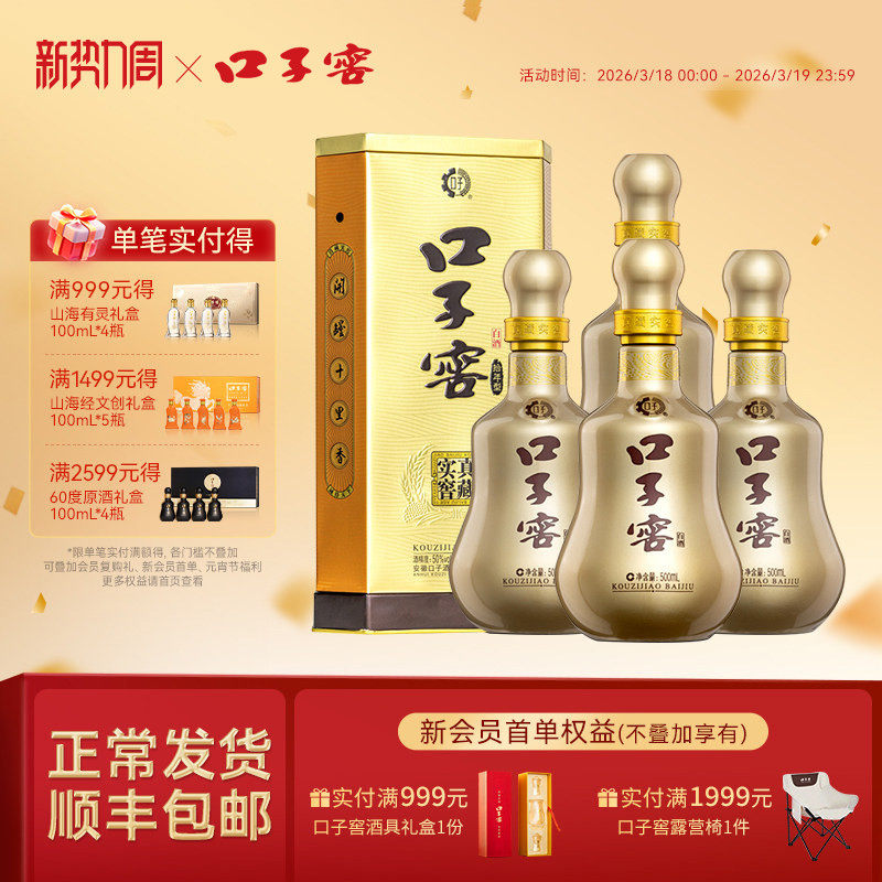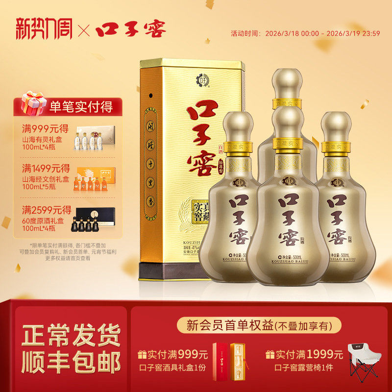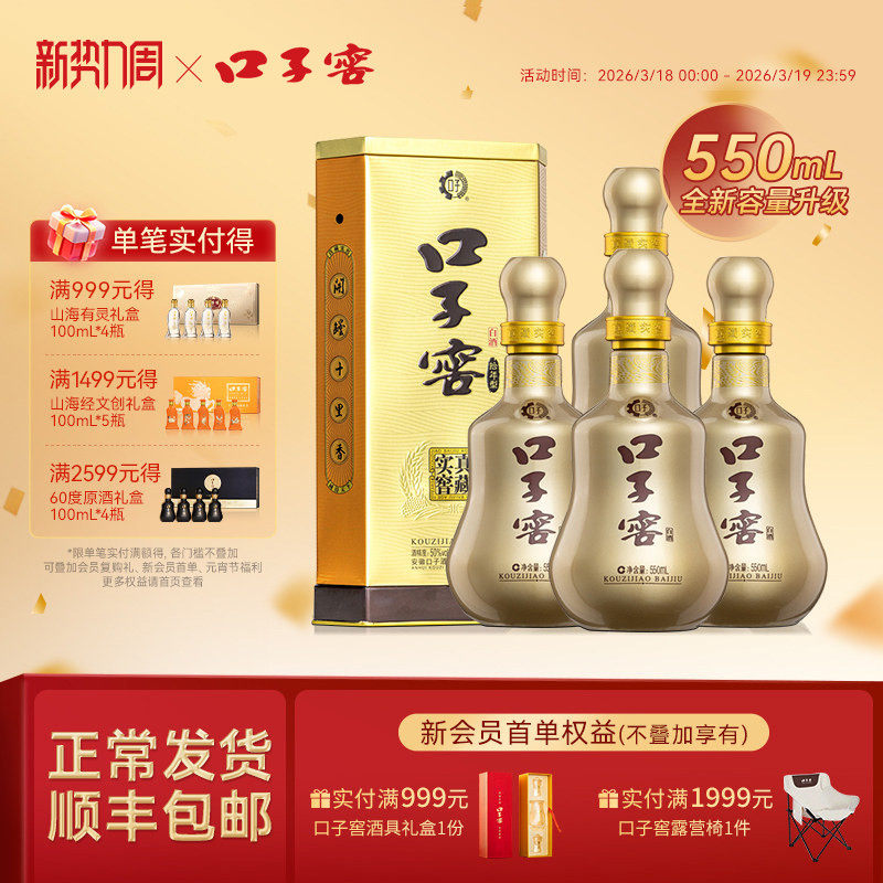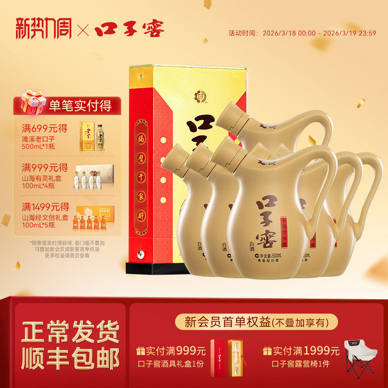 口子窖小池窖特酿41度500mL*4瓶手提装 安徽白酒送长辈官方旗舰店