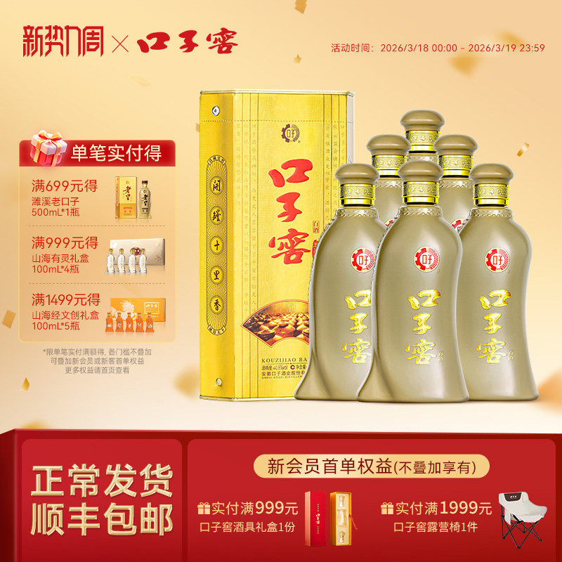 口子窖6年型41度450mL*6瓶 六年型安徽白酒整箱送长辈 官方旗舰店
