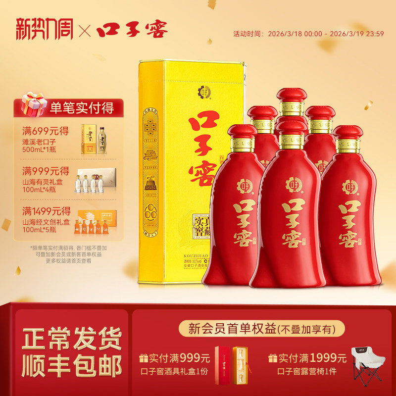口子窖6年型52度450mL*6瓶 六年型高度白酒整箱送长辈 官方旗舰店