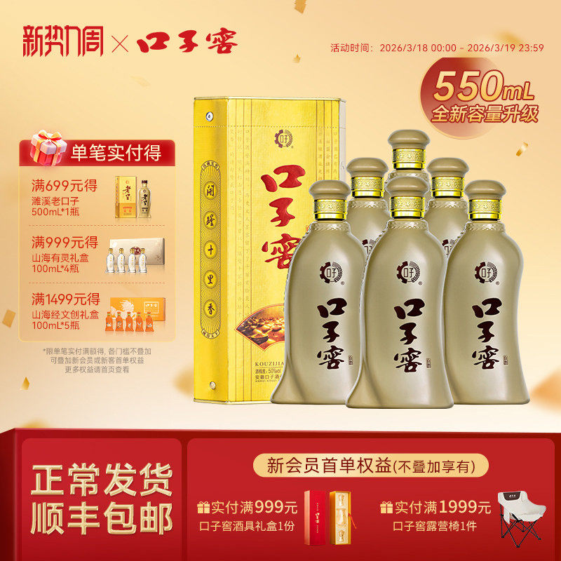 【升级550mL】口子窖6年型50度550mL*6瓶 六年型白酒整箱婚宴送礼