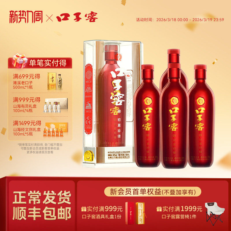 口子窖初夏珍储41度/50度500ml*4瓶 高度白酒整箱送礼 官方旗舰店