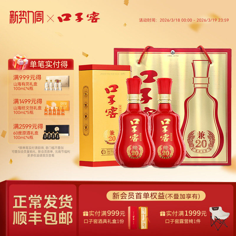 口子窖好运连台兼系列礼盒50度共1950mL 兼10兼20高端白酒送礼