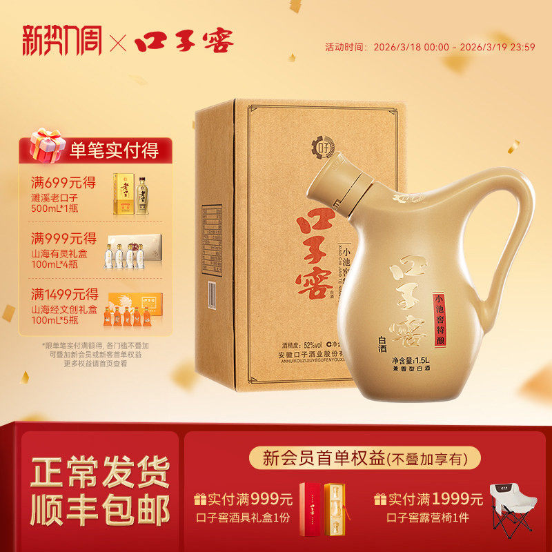 口子窖小池窖特酿52度1.5L*1瓶 兼香型纯粮食白酒送礼 官方旗舰店