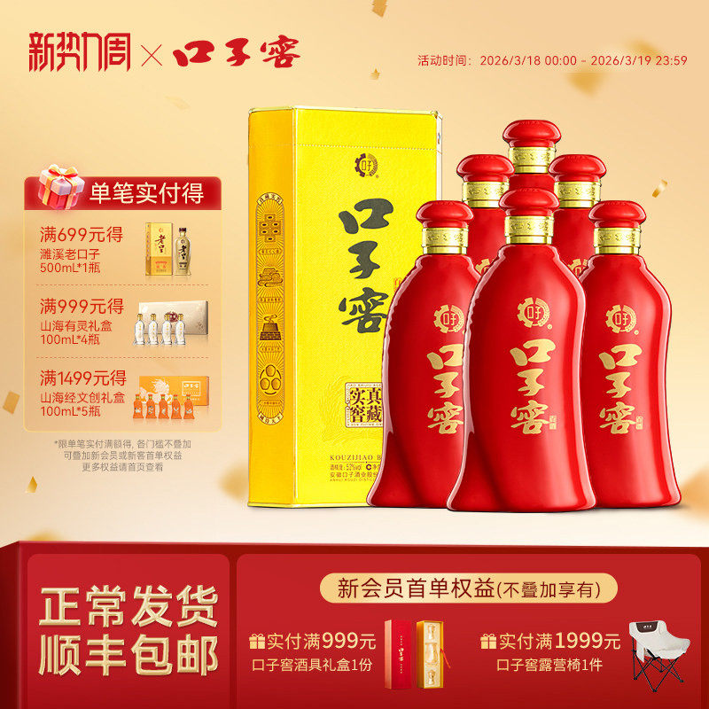 口子窖小池窖特酿52度500mL*6瓶 白酒整箱送礼送长辈 官方旗舰店