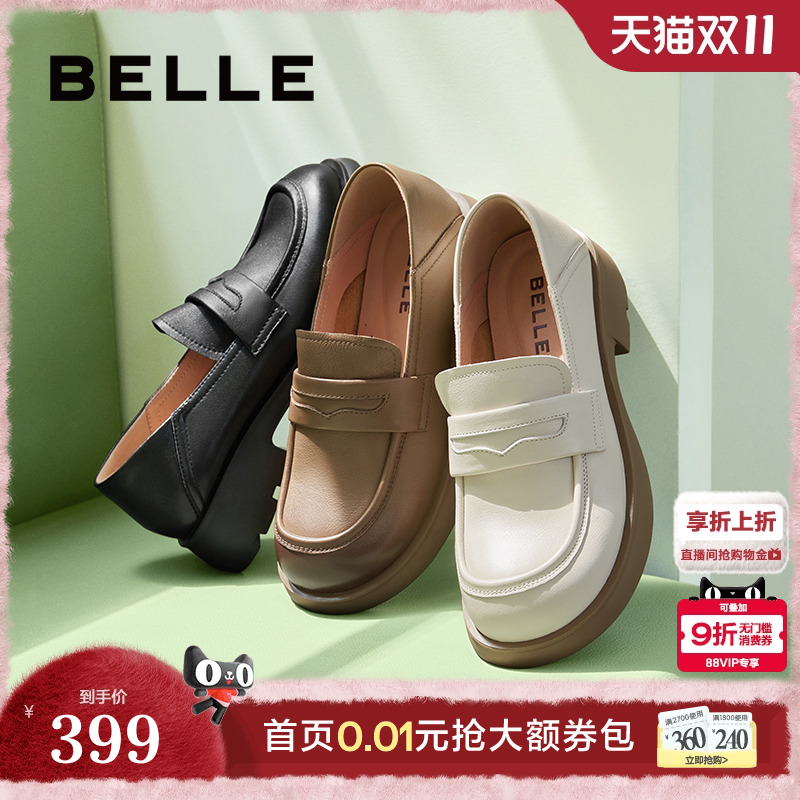 百丽复古英伦风乐福鞋女新款真皮小皮鞋子软底深口单鞋A5Z1DAA4