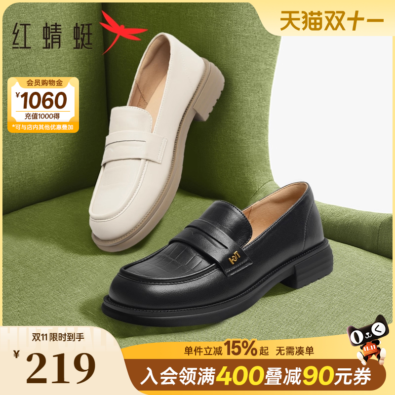 红蜻蜓乐福鞋女新款一脚蹬女鞋软底通勤鞋子舒适黑色皮鞋女款单鞋
