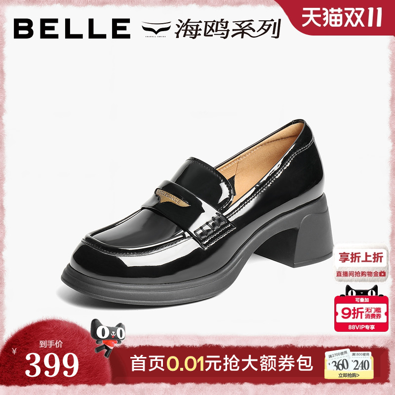 百丽女鞋子海鸥乐福鞋新款JK黑色小皮鞋真皮深口单鞋子A5W1DCA4