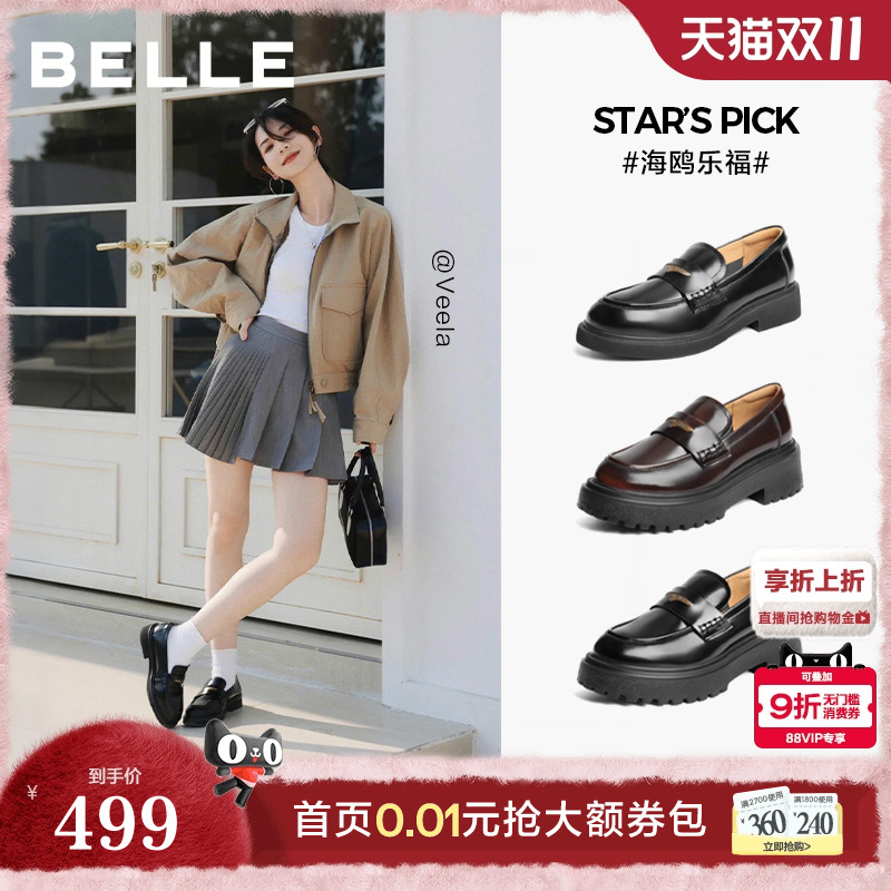 百丽海鸥英伦风乐福鞋女25新款软底不累脚小皮鞋单鞋子D7D1DAA5预