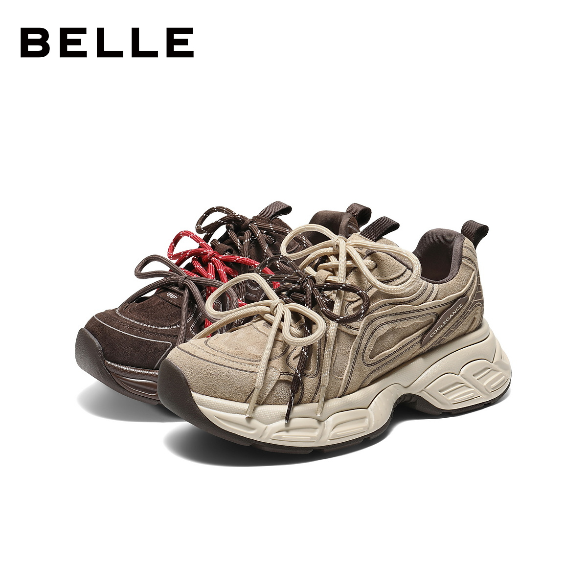 百丽女鞋子厚底增高老爹鞋棕色新款美拉德运动休闲鞋预B2945AM6