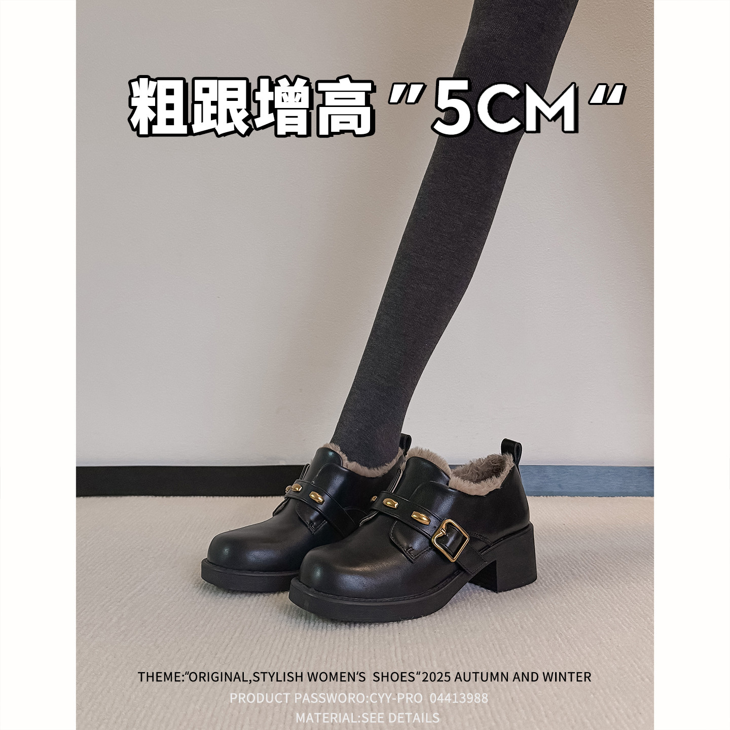 黑色厚底小皮鞋2025新款粗跟高跟单鞋英伦风秋冬小个子内增高女鞋