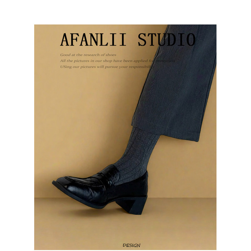 2025春季新款英伦风厚底乐福鞋粗跟黑色真皮中跟软底一脚蹬小皮鞋