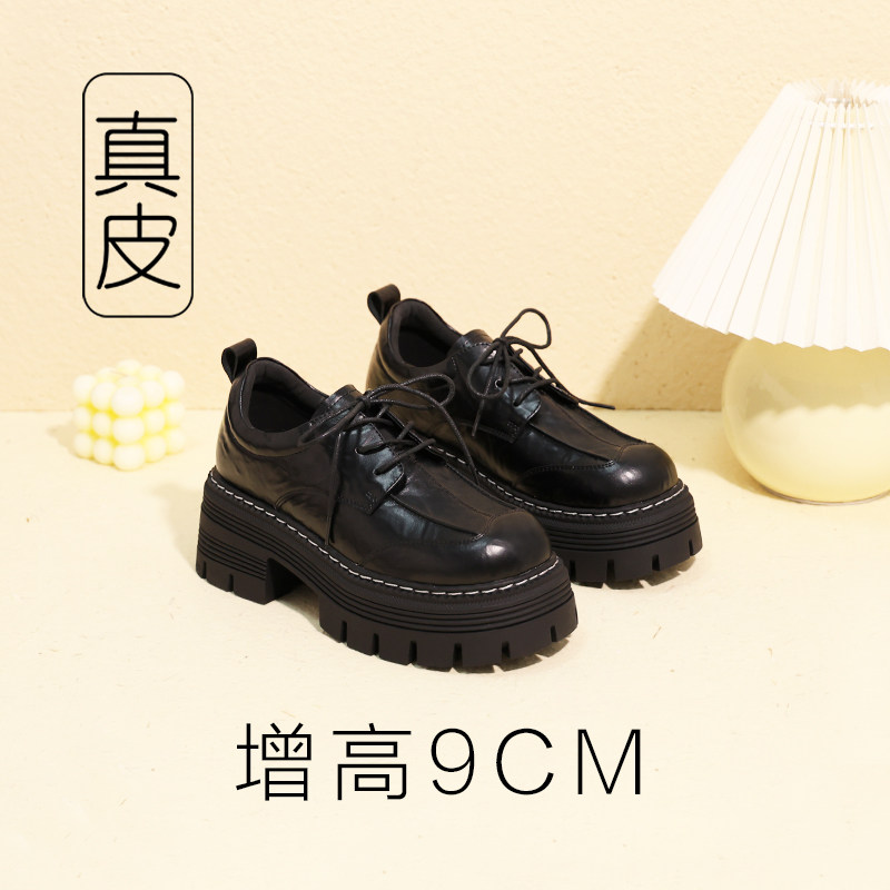 鞋子女厚底粗跟英伦风小皮鞋真皮百搭增高女鞋单鞋黑色乐福鞋女款