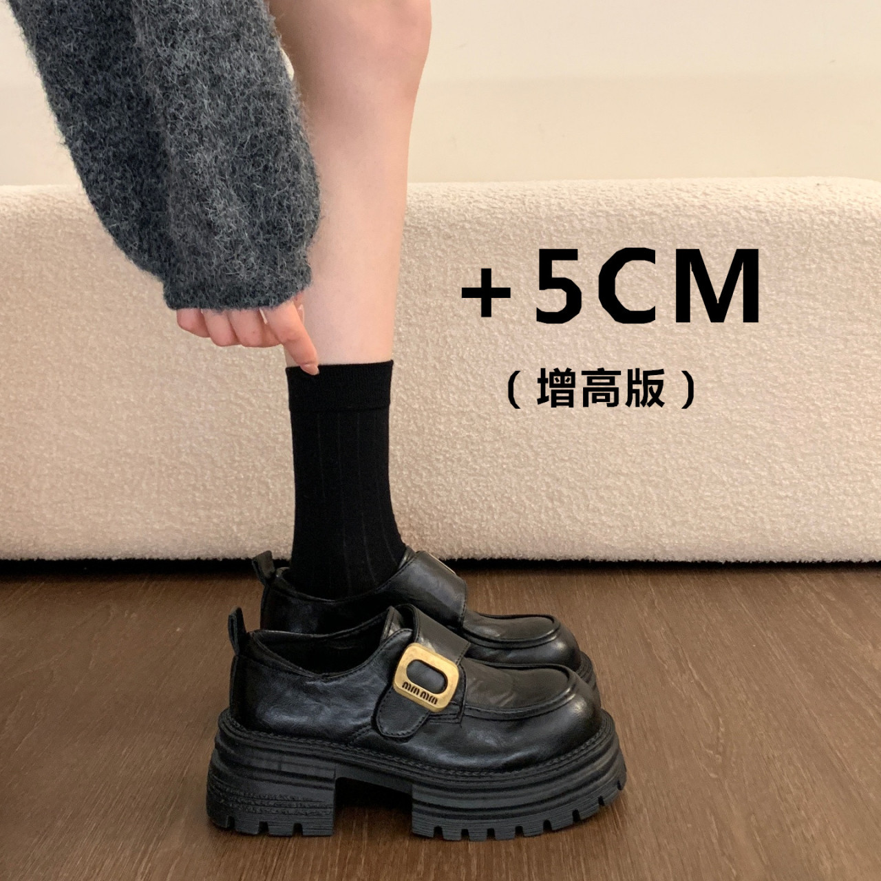 长高5cm~真皮厚底小金币乐福鞋女英伦风小个子黑色小皮鞋粗跟单鞋