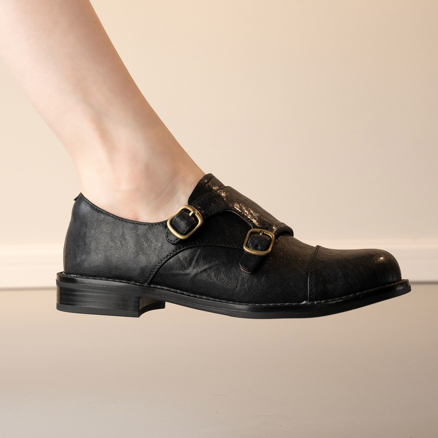 羊皮版~英伦风黑色通勤乐福鞋女复古学院风粗跟真皮一字扣小皮鞋