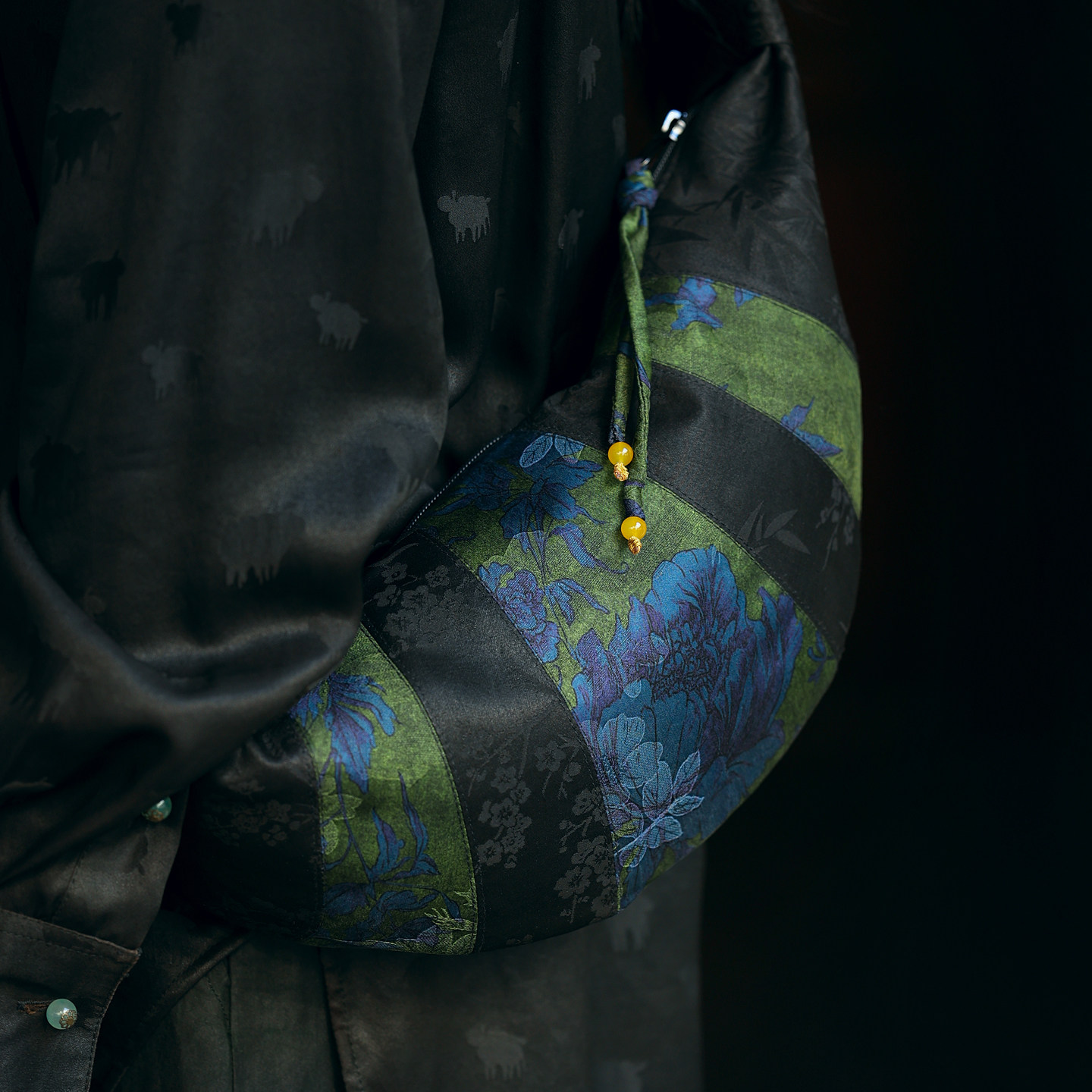 双姊妹原创香云纱牛角包女包手工布包新中式斜挎桑蚕丝拉链单肩包
