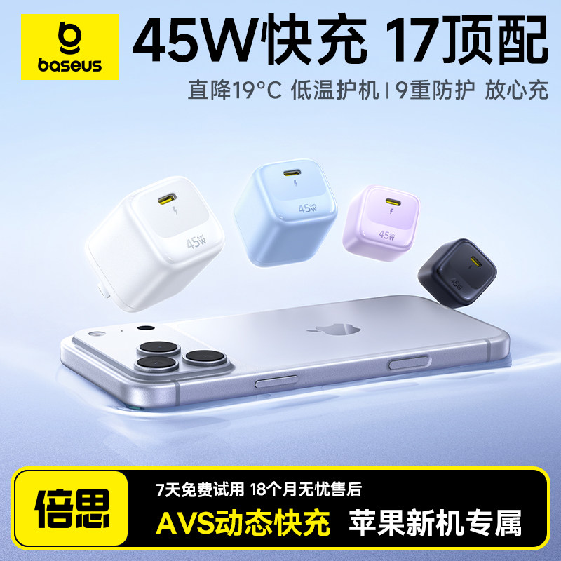 【iPhone17专属】倍思小冰充适用苹果充电头iPhone17Promax手机充电器快充头45W/40W氮化镓插头Type-C数据线