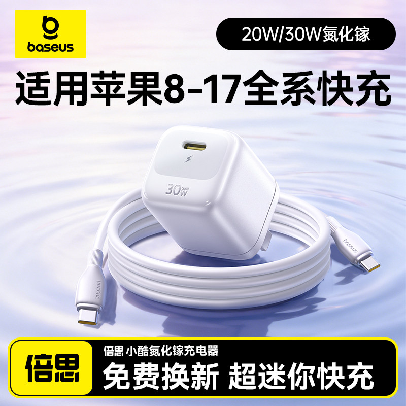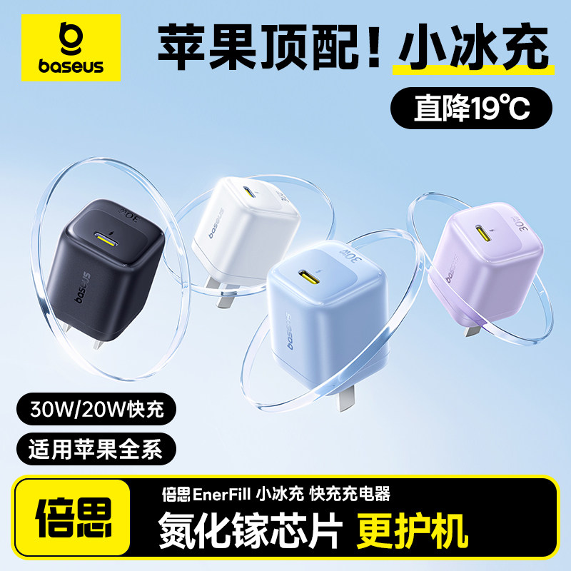倍思新款小冰充适用苹果17Promax充电器iPhone16充电头15氮化镓14快充头手机pd30w插头20w数据线typec套装13