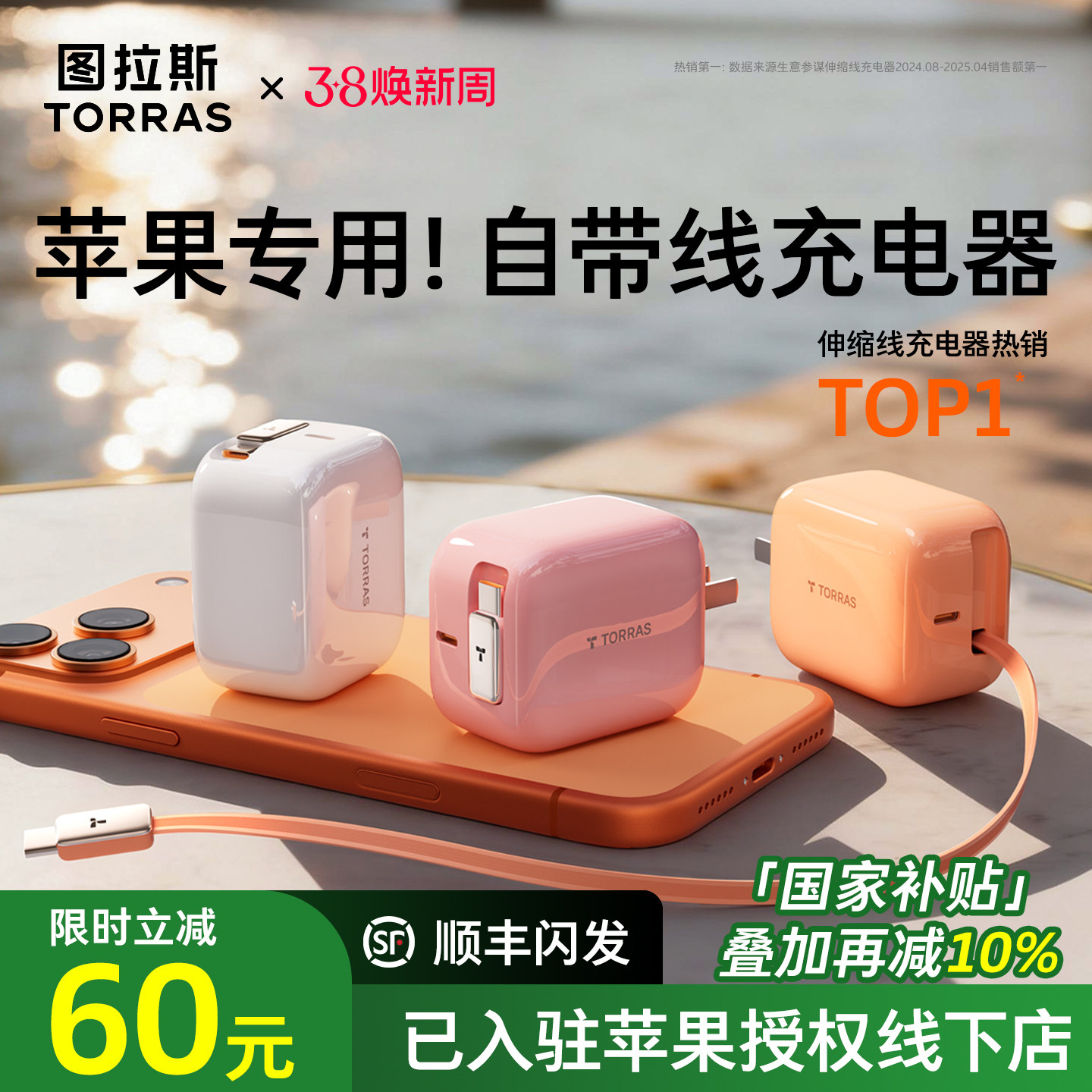 【papi酱同款】图拉斯Yoga充电器伸缩线45W适用苹果17ProMax自带数据线iPhone16充电头抽拉式手机快充头Air插