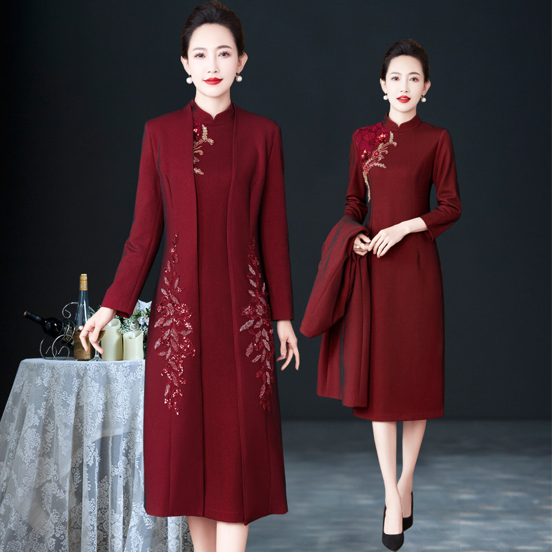 改良旗袍连衣裙2026新款女春秋冬加厚高端喜婆婆婚宴妈礼服配大衣
