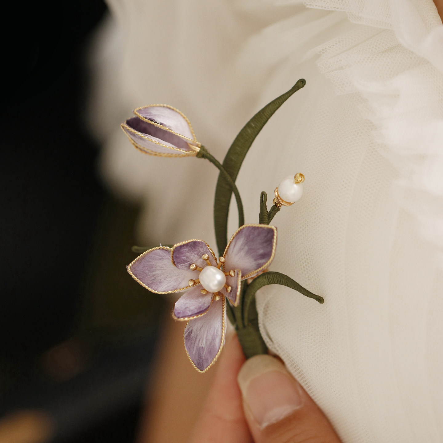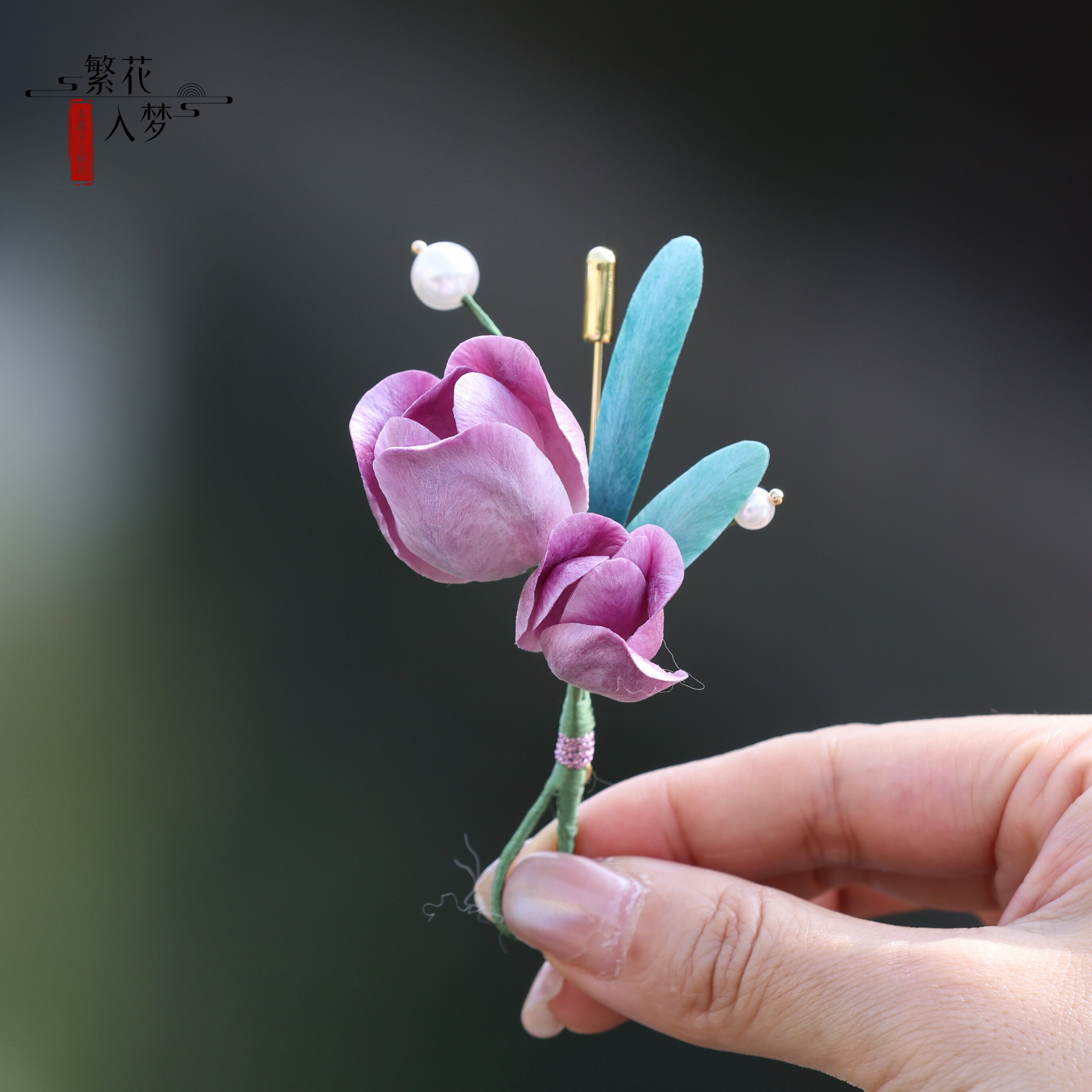 繁花入梦纯手工非遗绒花胸针紫色郁金香胸花外套大衣旗袍别针配饰