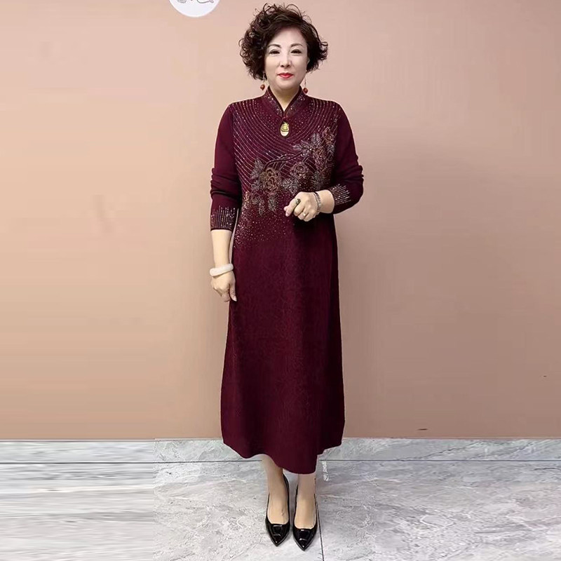 秋冬旗袍改良连衣裙羊毛针织保暖妈妈百搭显瘦中长款配大衣长裙子