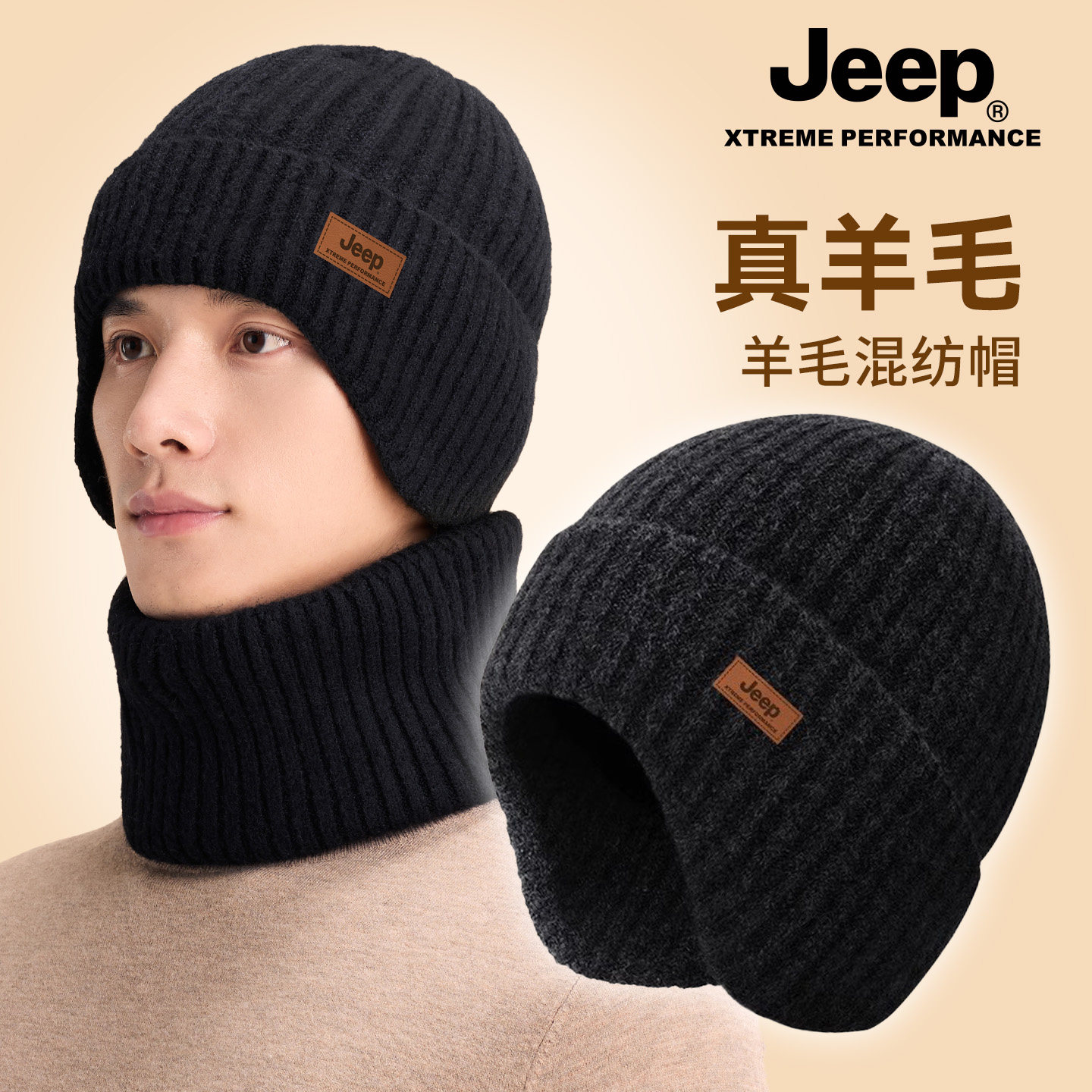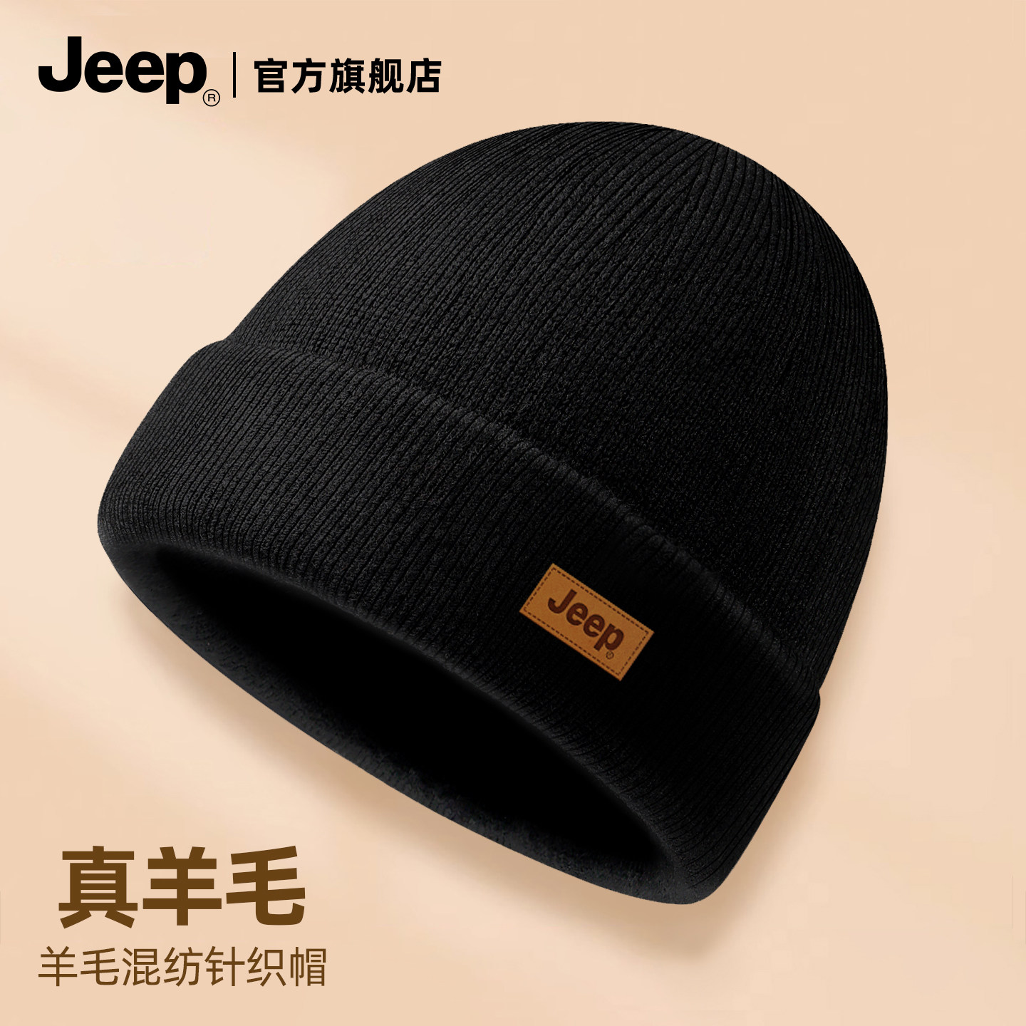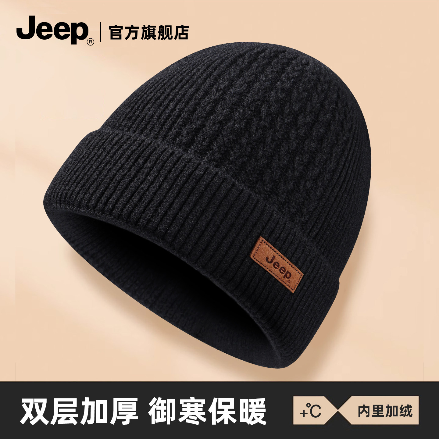 jeep吉普帽子男冬2025新款保暖针织帽加绒防风防寒冬季羊毛混纺帽