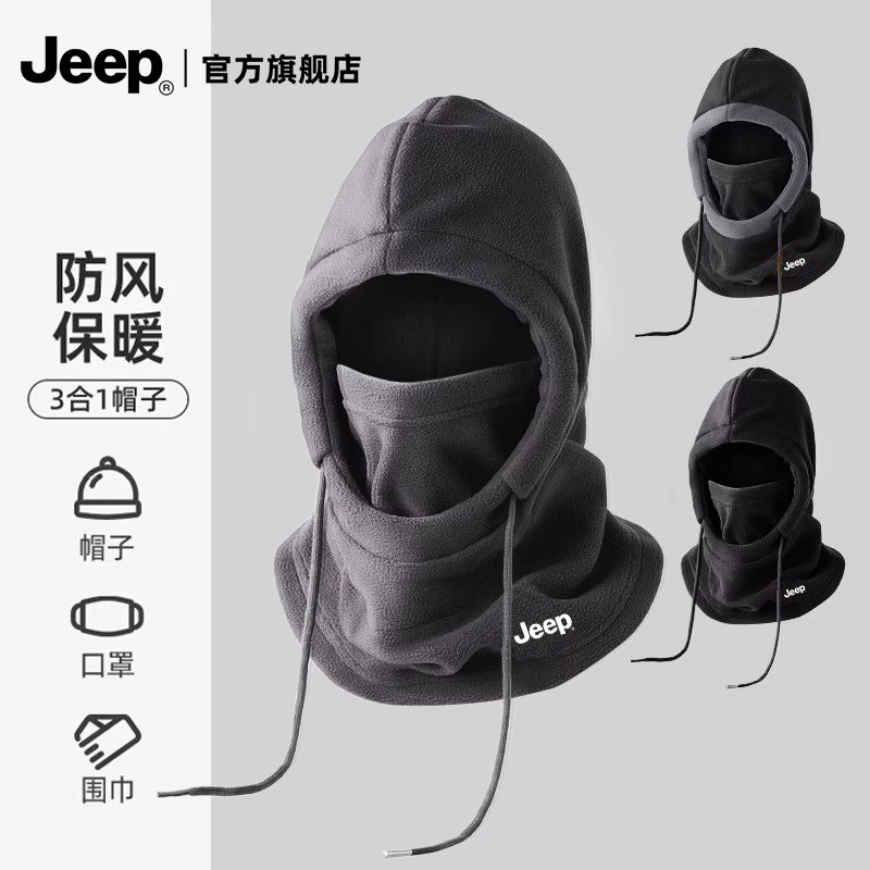 jeep吉普帽子男士冬季骑行保暖防寒风围脖面罩加厚毛绒骑行套头帽