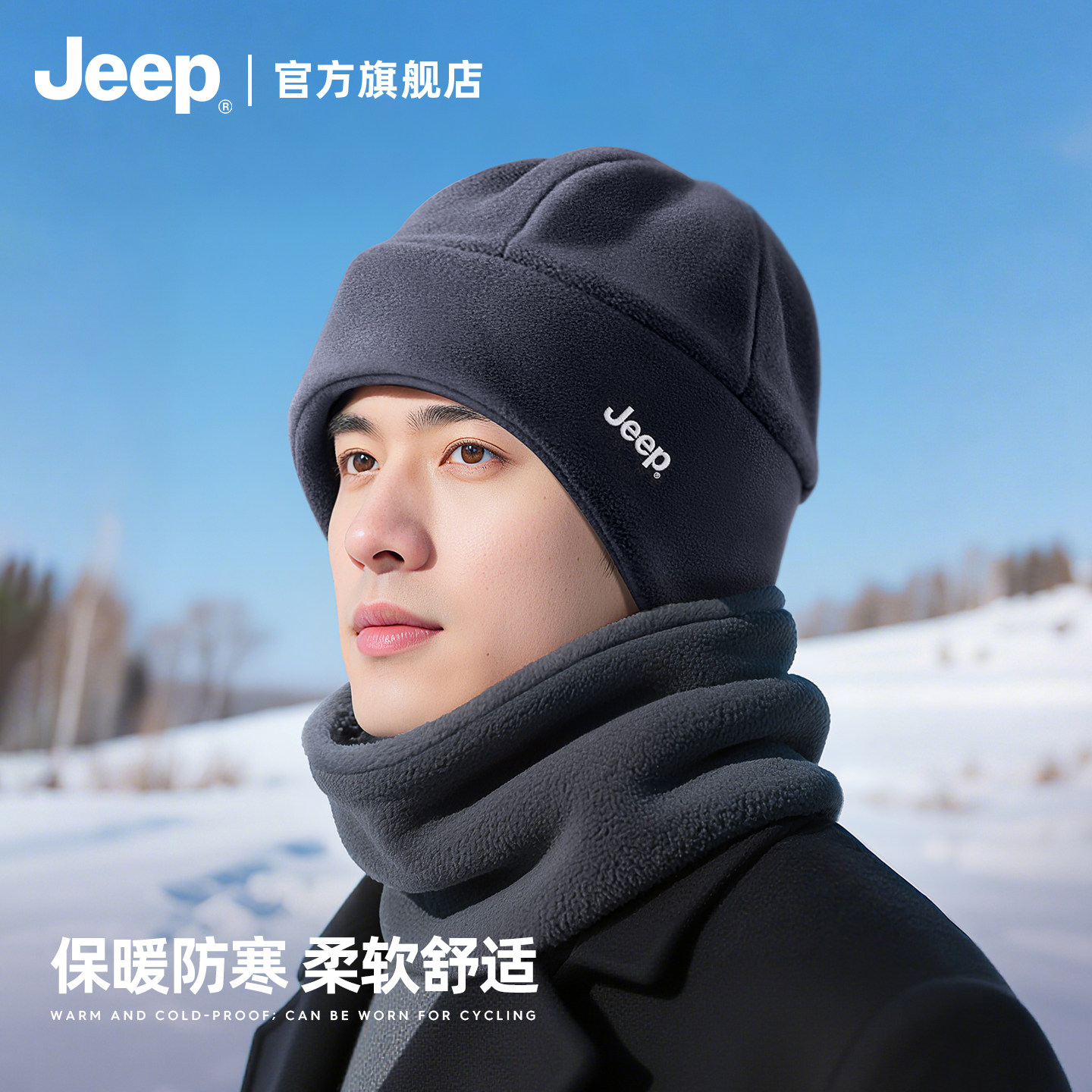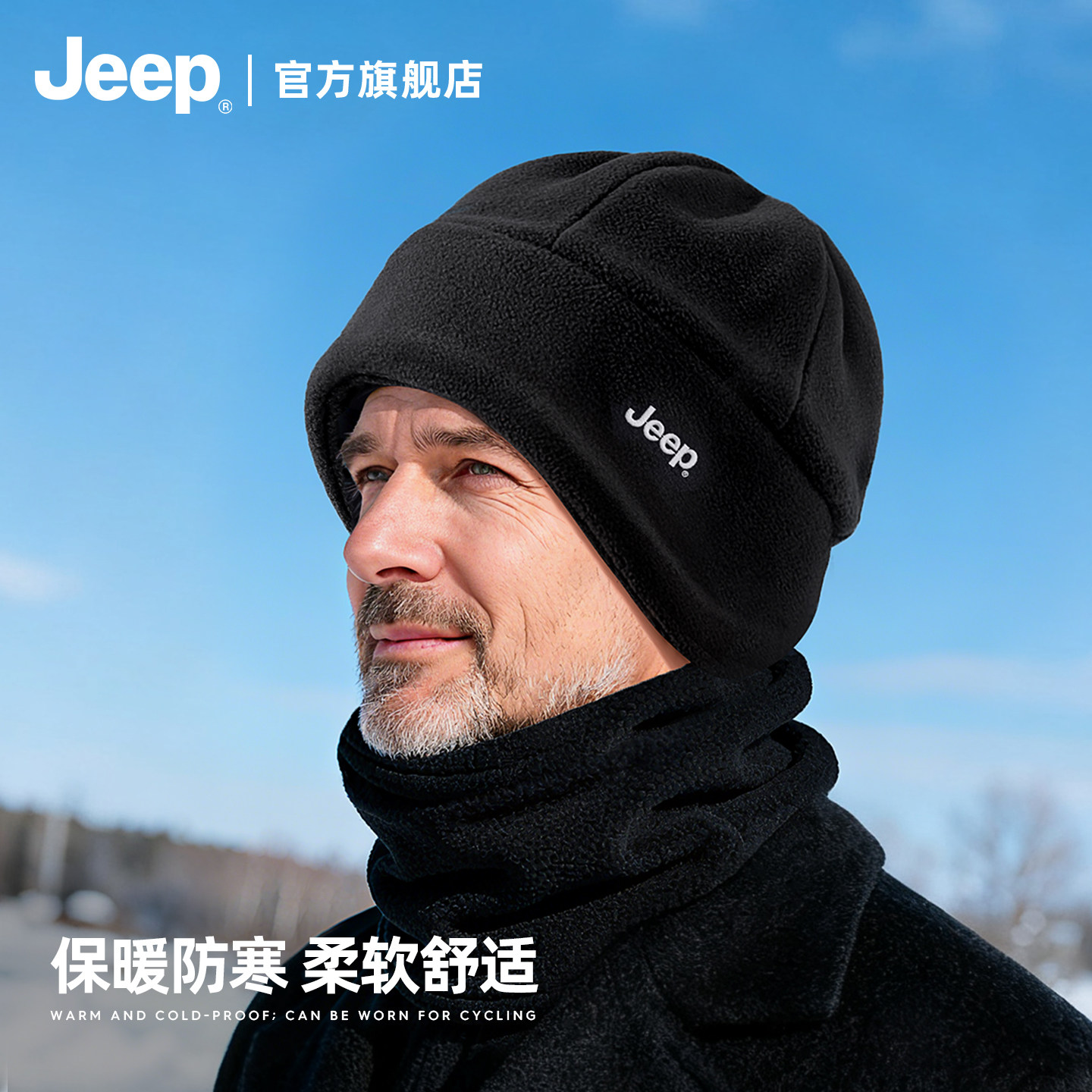 jeep吉普帽子男款冬季户外保暖套装防寒风围脖面罩加厚骑行套头帽