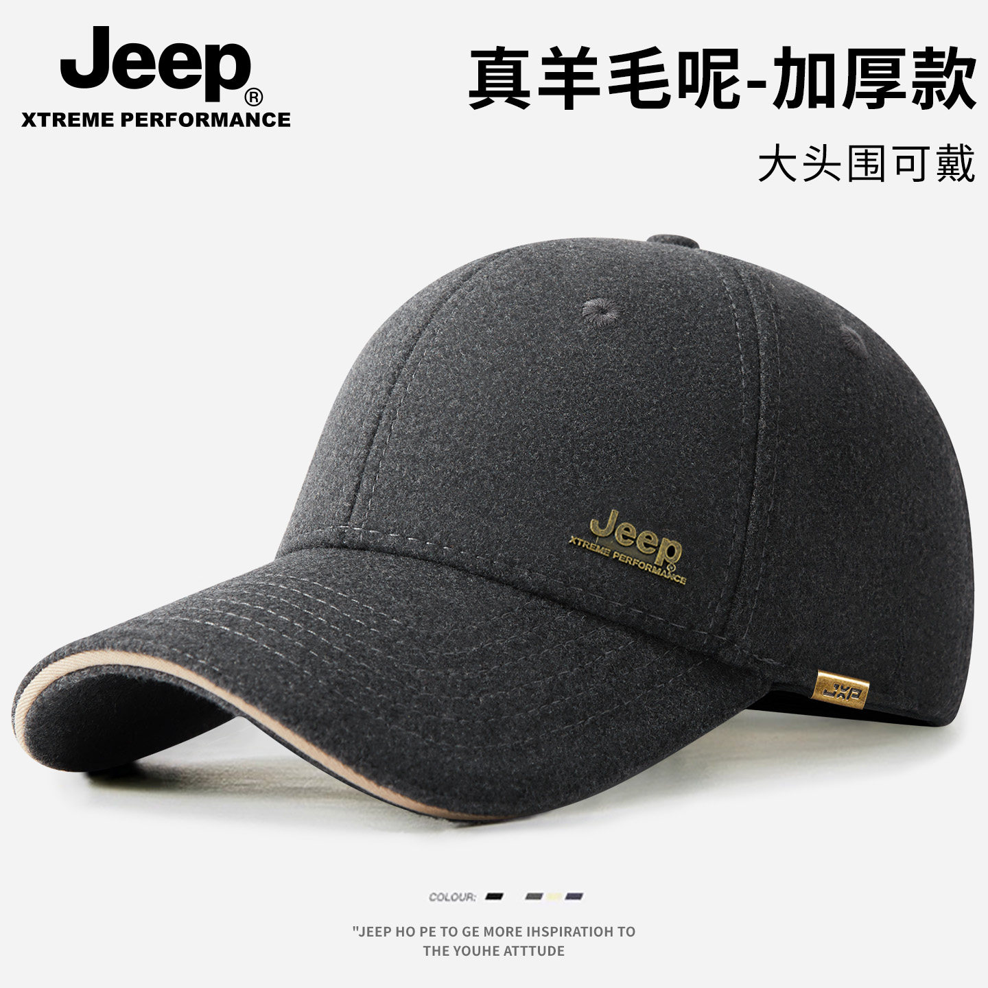 jeep吉普帽子男大头围秋冬大码宽檐加深棒球帽冬季纯棉男士鸭舌帽